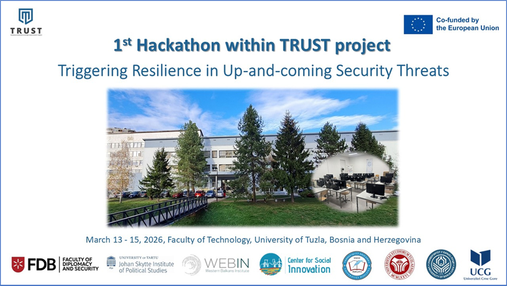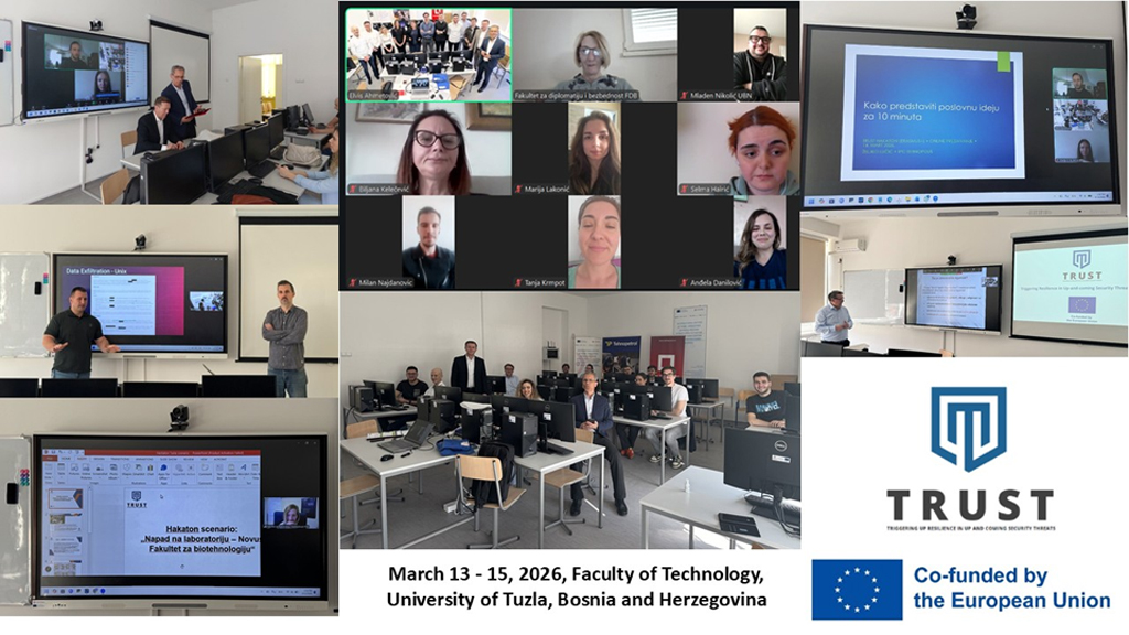 Na Tehnološkom fakultetu Univerziteta u Tuzli, u INTERBA laboratoriji-Računarskom centru, od 13. do 15. marta 2026. godine, održan je prvi od četiri hakatona u okviru Erasmus+ TRUST projekta Triggering Resilience in Up-and-coming Security Threats. U realizaciji tog projekta, sa Univerziteta u Tuzli, učestvuju Fakultet elektrotehnike i Tehnološki fakultet.